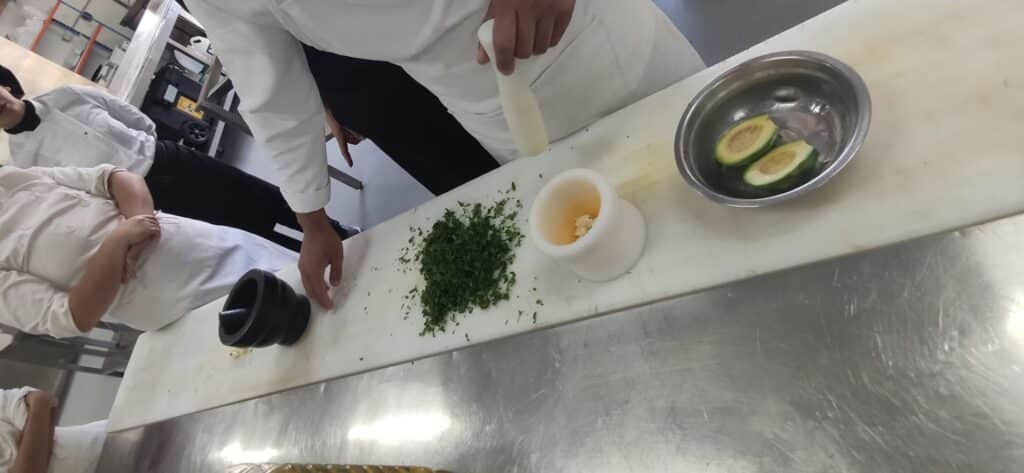 Les enseignants ont ensuite assisté à un cours de cuisine animé par Alejandro San Fiel et Ángel Domínguez. Ce moment a permis de découvrir plusieurs spécialités emblématiques de la gastronomie canarienne, notamment les papas arrugadas (pommes de terre ridées) accompagnées de mojo verde et mojo rojo, deux sauces traditionnelles très populaires dans l’archipel.