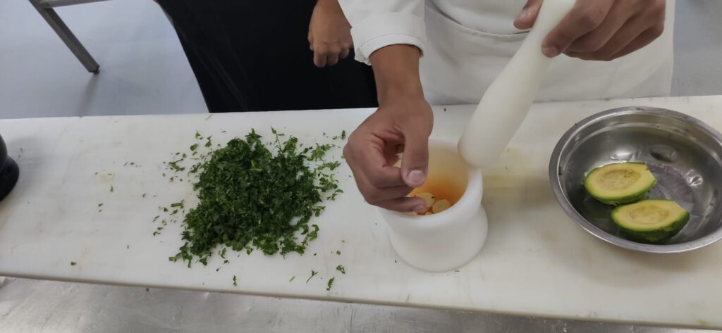 Côté sucré, les élèves ont également travaillé autour d’un produit typique des Canaries : le gofio, une farine de céréales torréfiées utilisée dans de nombreuses préparations, de l’entrée au dessert (soupes, garnitures, mousses…).
